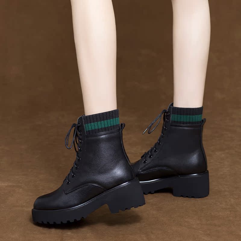 厚底短靴百搭英伦风黑色靴子女款 回力马丁靴女款 爆款 秋季 2025新款
