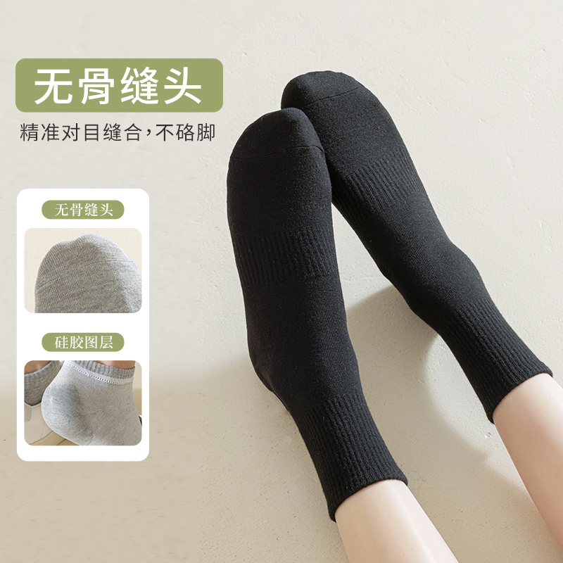黑色袜子女短袜春秋冬季 双杠短筒袜 纯棉防臭中筒袜无骨月子袜夏季