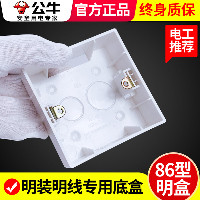 公牛86型线盒明装 底盒明盒开关盒家用插座面板接线盒子底座明线盒