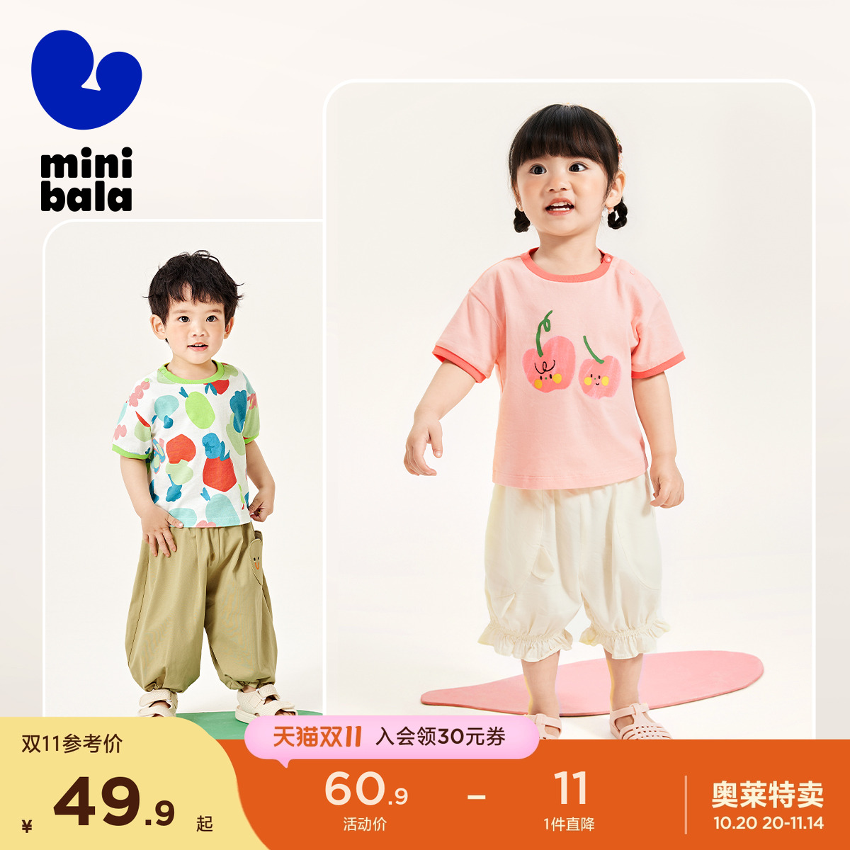 99元 t恤男童长袖 3件 儿童短袖 T恤女童上衣亲子装 巴拉巴拉童装