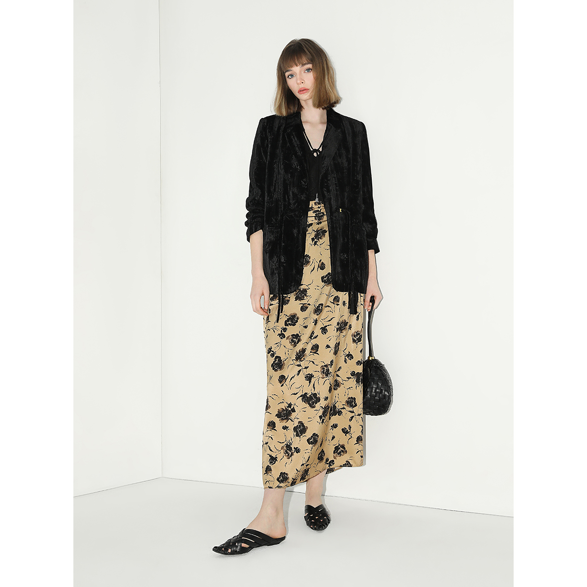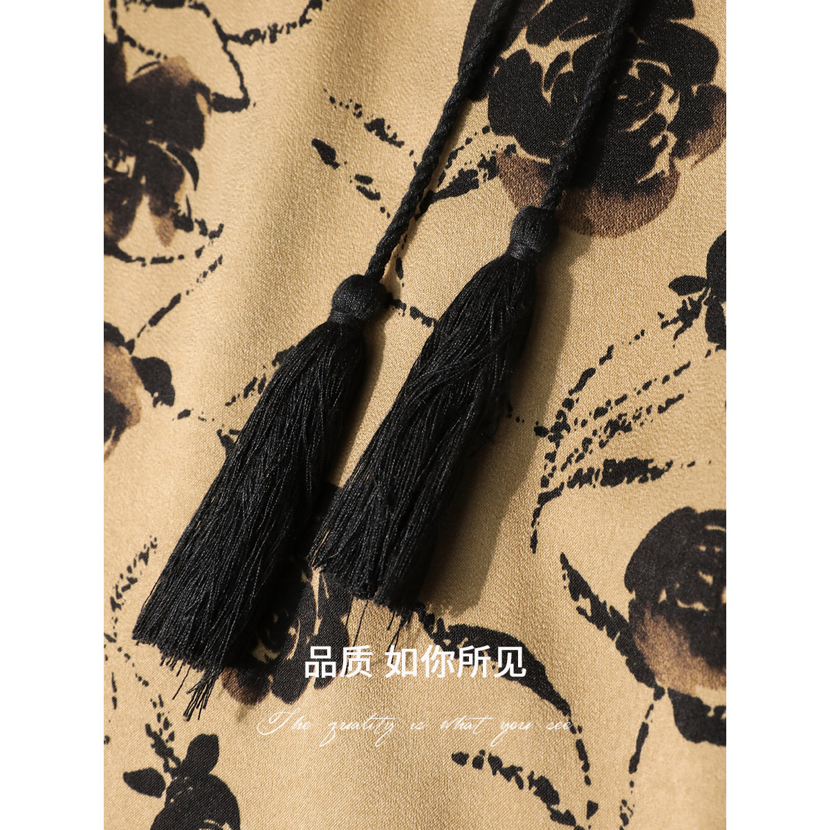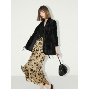 0192 a字裙休闲长裙子 美拉德山茶花褶皱百褶裙半身裙春秋女中长款
