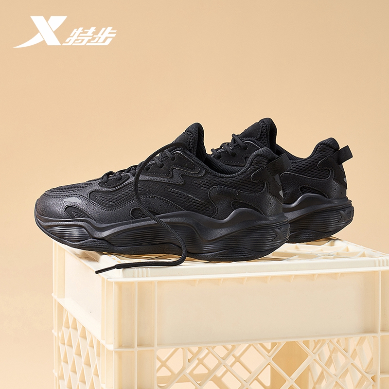 游牧运动鞋 轻便情侣复古老爹鞋 男2025新款 女鞋 黑色休闲鞋 特步男鞋