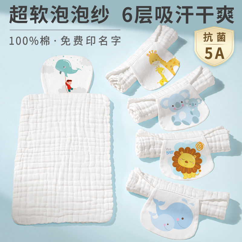 大号纱布隔汗巾儿童纯棉吸汗巾a类小孩宝宝垫背幼儿园绣名字婴儿