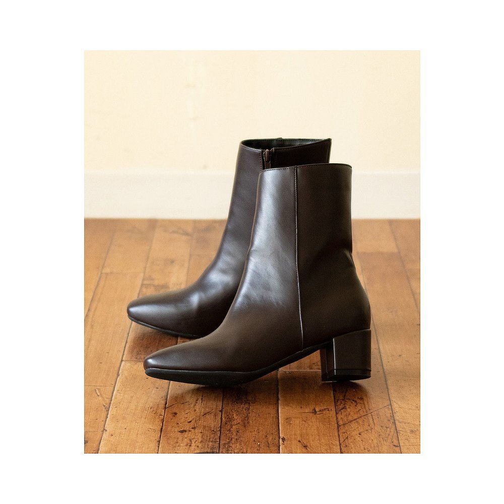 日本直邮 跟 Menue 中筒靴女士方头侧拉链鞋 1086深棕色 menue
