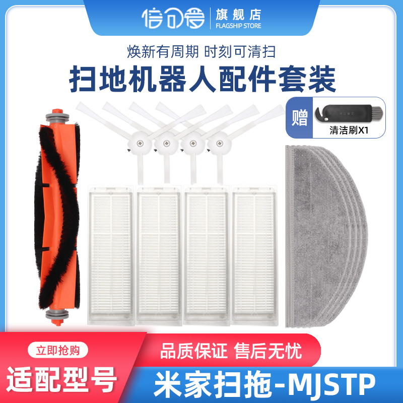 适配小米米家全能1S 2扫地机配件拖抹布边滚刷滤芯尘袋清洁液耗材