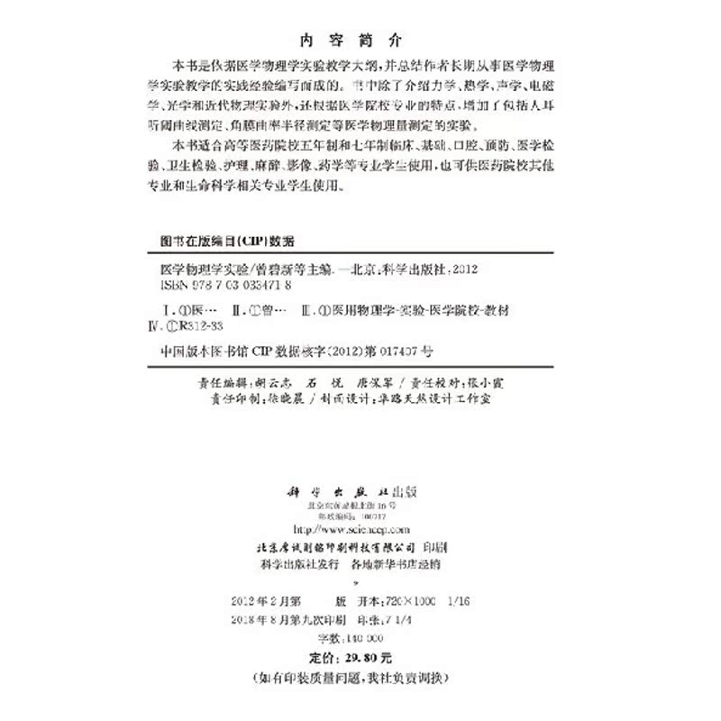 曾碧新 科学出版 黄敏 邵和鸿 社 陈付毅 医学物理学实验