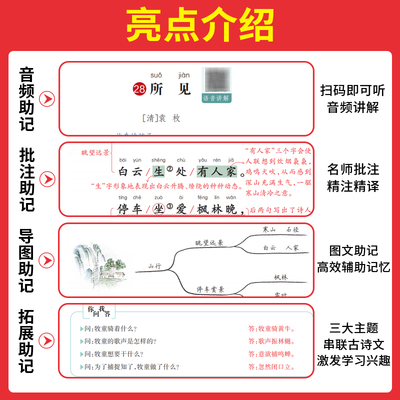 扫码 拓展助记 6年级 导图 批注 音频 小学语文必背古诗词 小学古诗文文言文大全 全国通用 小学生必背古诗文129篇1 一本必背古诗文
