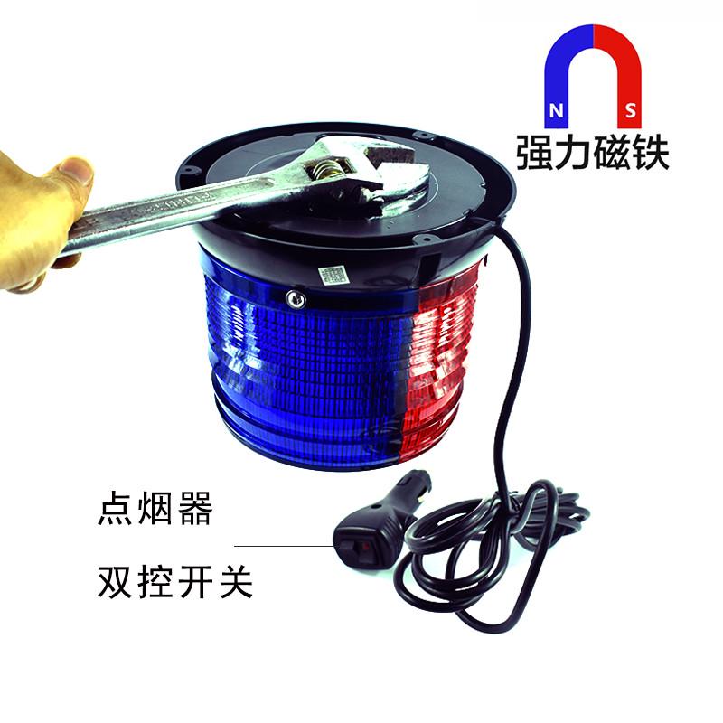 超高亮车载LED圆形红蓝爆闪灯吸顶汽车工程警12V灯开道警示灯24V