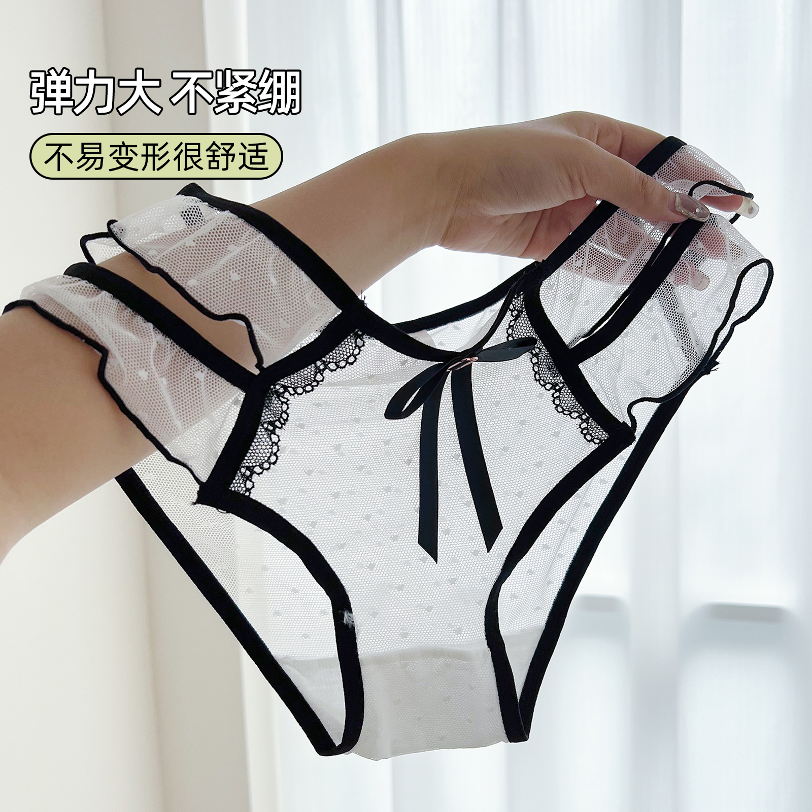 衩 头半透网纱性感低腰三角裤 六子兔子蕾丝内裤 女棉质透气底裆短裤