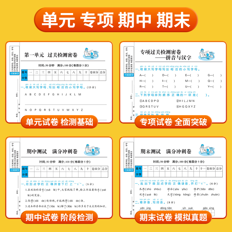 期中练习册期末卷子易错衔接冲刺券 尖子生密卷同步训练测试小学语文数学英语苏教北师下册单元 黄冈100分 一年级上册试卷全套人教版