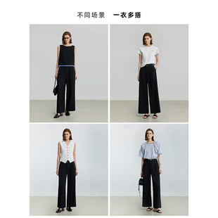 女春秋新款 休闲直筒慵懒松弛感裤 高腰垂感窄版 裤 子 西装 黑色阔腿裤