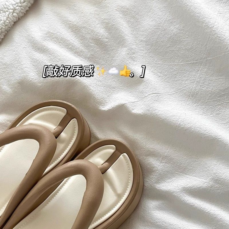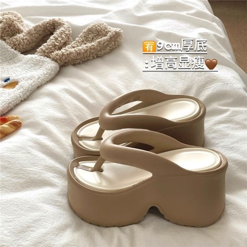 显高粉墨色 透气防滑沙滩海边凉拖 7cm厚底增高人字拖女ins夏季