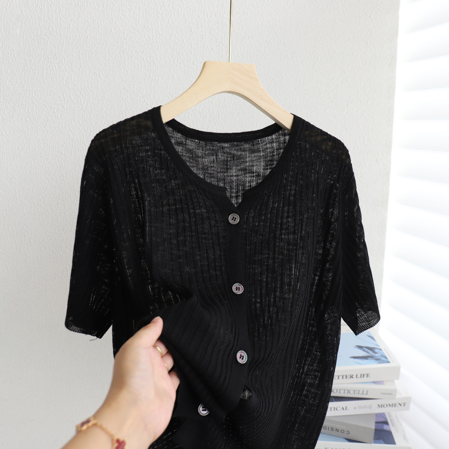 透气薄款 冰丝短袖 外搭开衫 女2025夏季 配连衣裙外套上衣 t恤针织衫