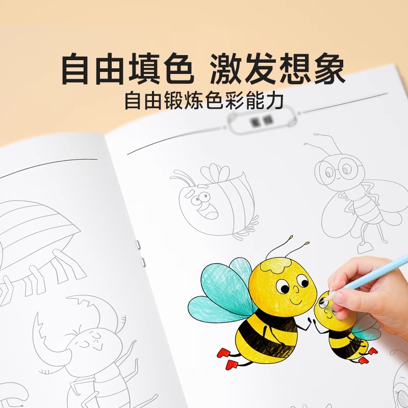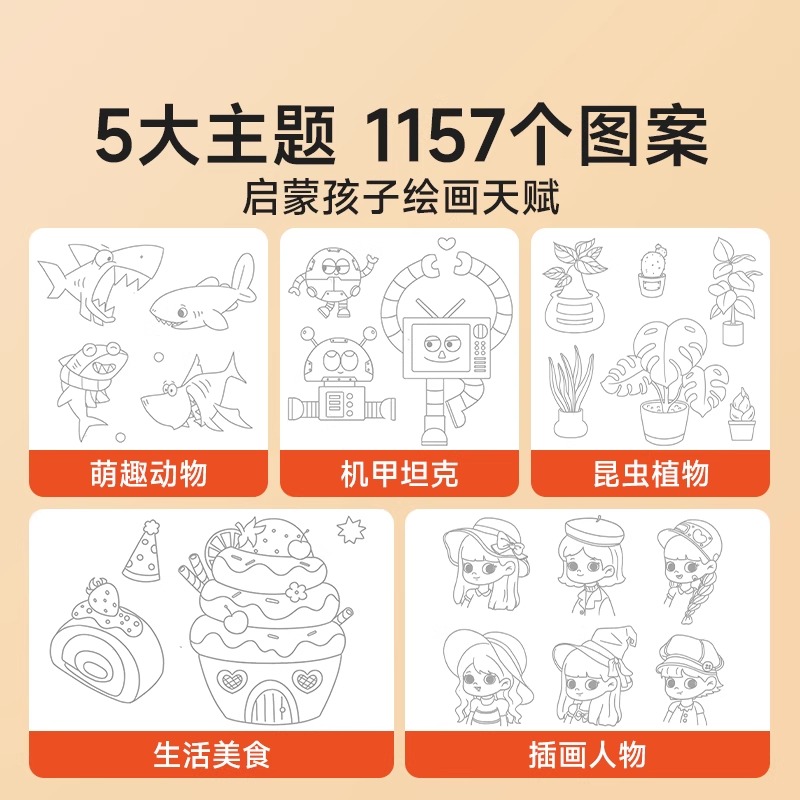 时光学儿童线描临摹画册套装 幼儿控笔训练卡通简笔画线稿绘画描线控笔图画本 萌趣动物生活美食插画人物机械战甲昆虫植物全5册套装