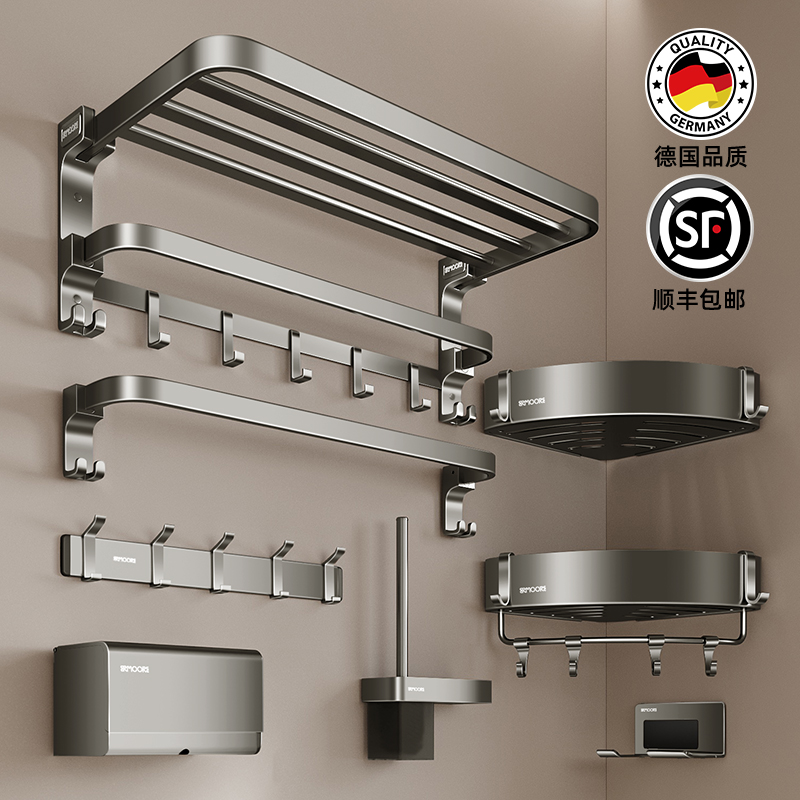 2025新款 高端浴巾架卫生间置物架免打孔毛巾架浴室壁挂收纳5件套