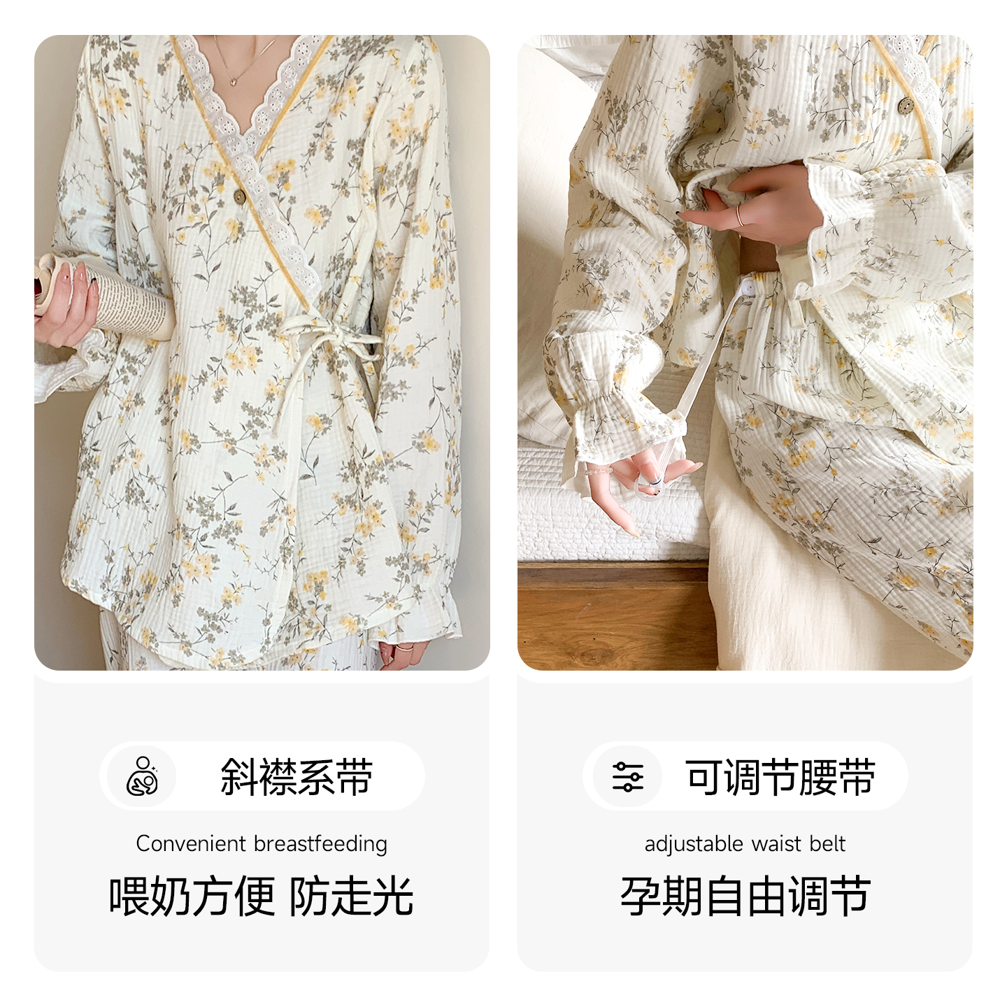 康喜月孕妇睡衣夏季 纯棉纱布月子服产妇系带待产服产妇喂奶哺乳装