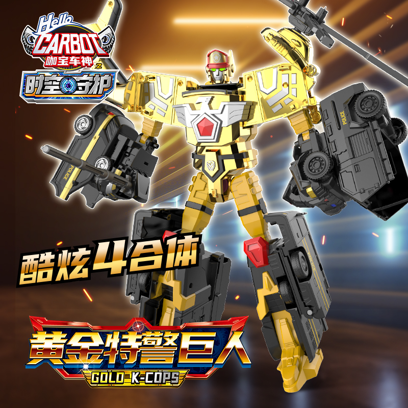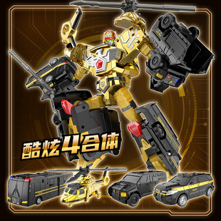 特警巨人四合体特警变形机器人男孩玩具全套装 正版 咖宝车神黄金版
