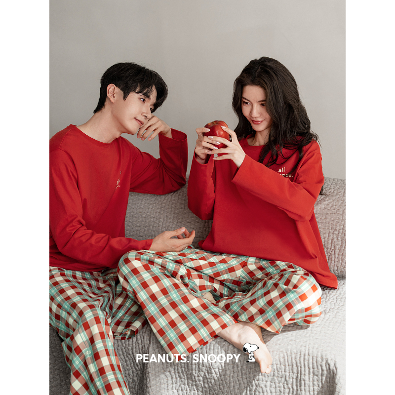 2025新款 套装 纯棉长袖 小狗情侣家居服春秋男士 带胸垫长裤 睡衣女款