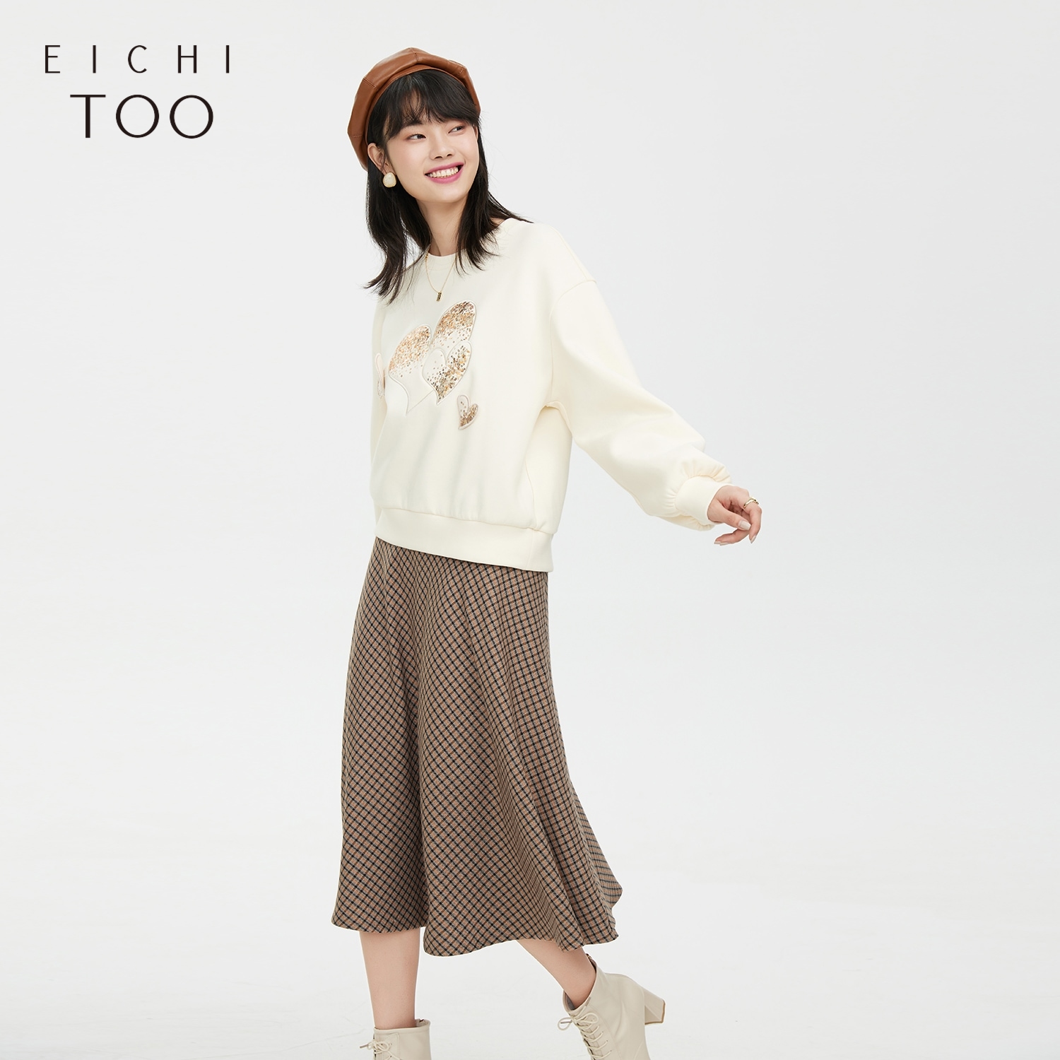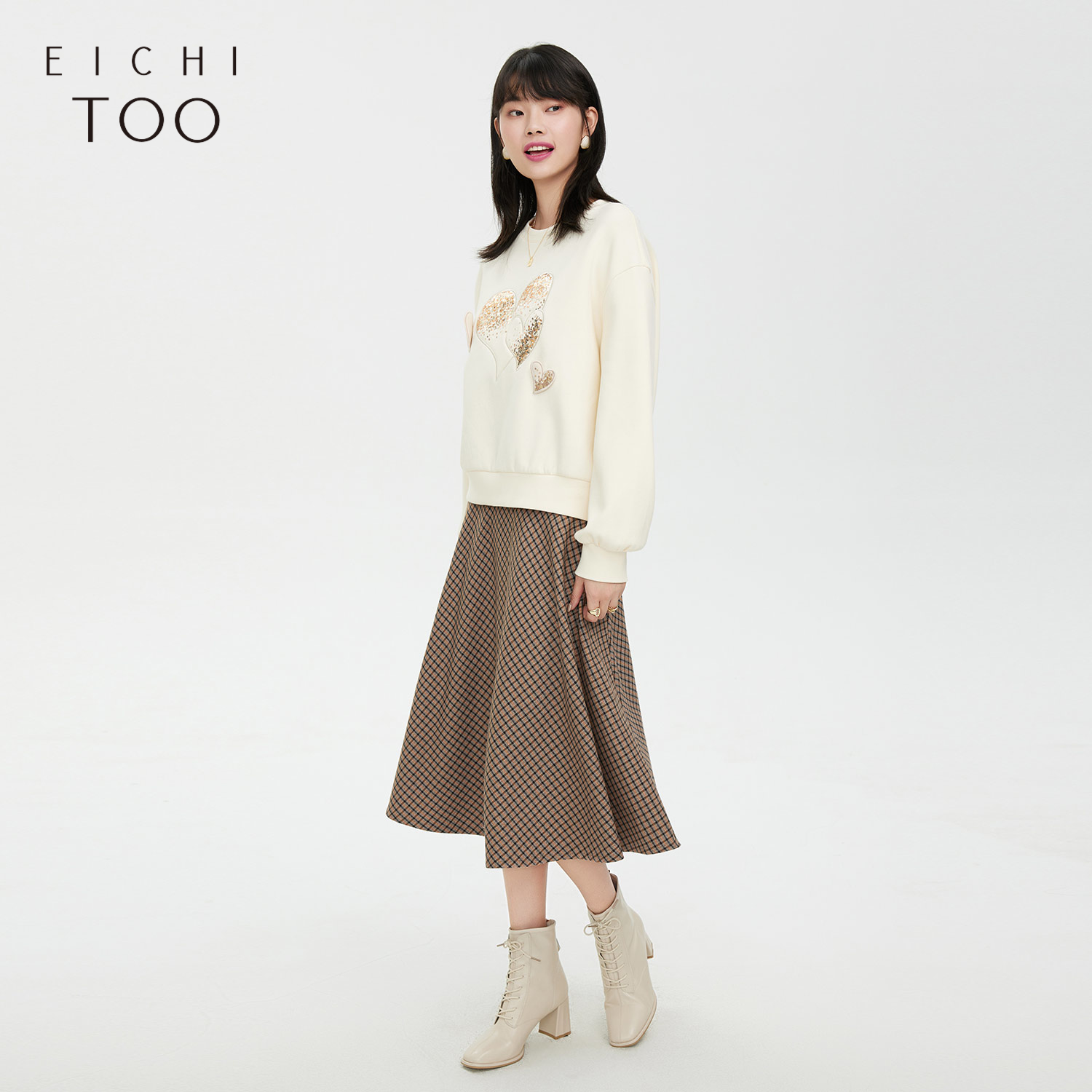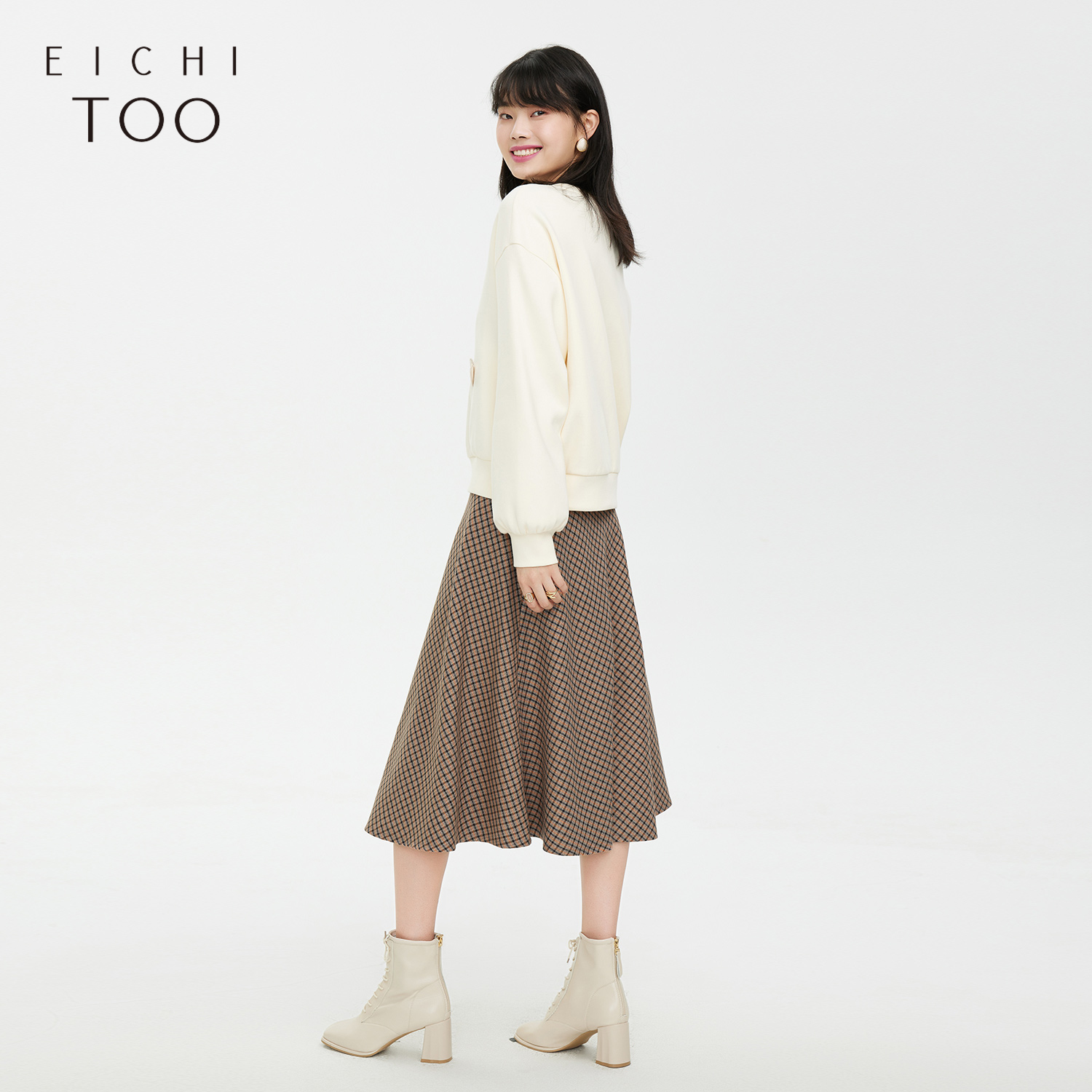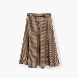 时尚 中长裙经典 格纹提花复古半身裙伞裙 女装 爱居兔秋季