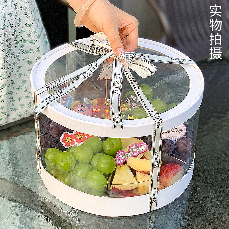 双层水果包装 水果蛋糕礼盒 盒鲜花礼盒6拼果切盒礼品盒空盒子法式
