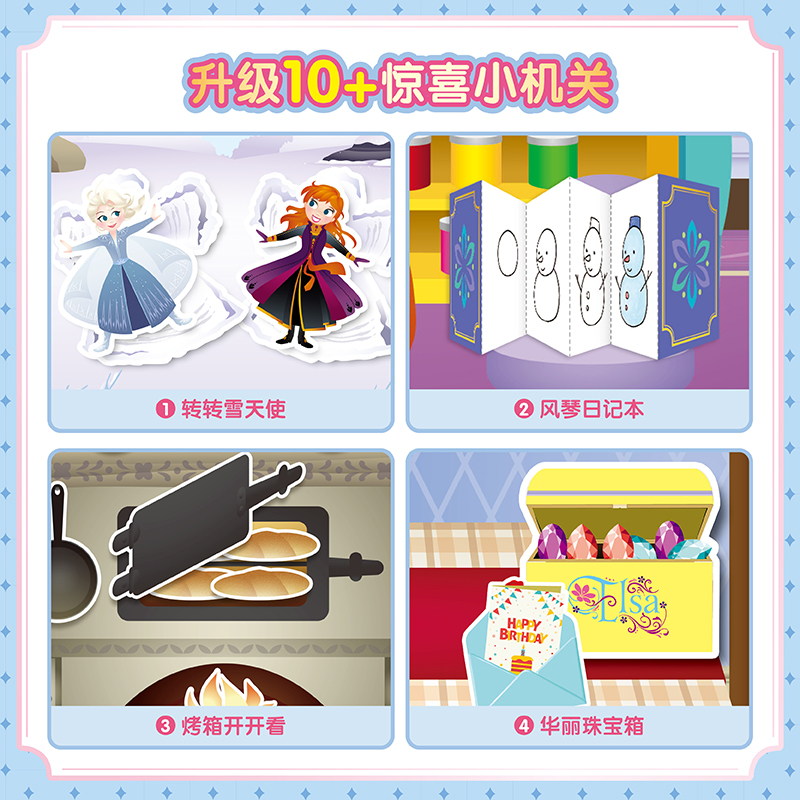 艾莎 安娜 枚免裁切贴纸 冰雪奇缘安静书女孩手账益智手工玩具游戏书籍 儿童幼儿启蒙书 6个场景200 全套4册 雪宝 迪士尼 城堡