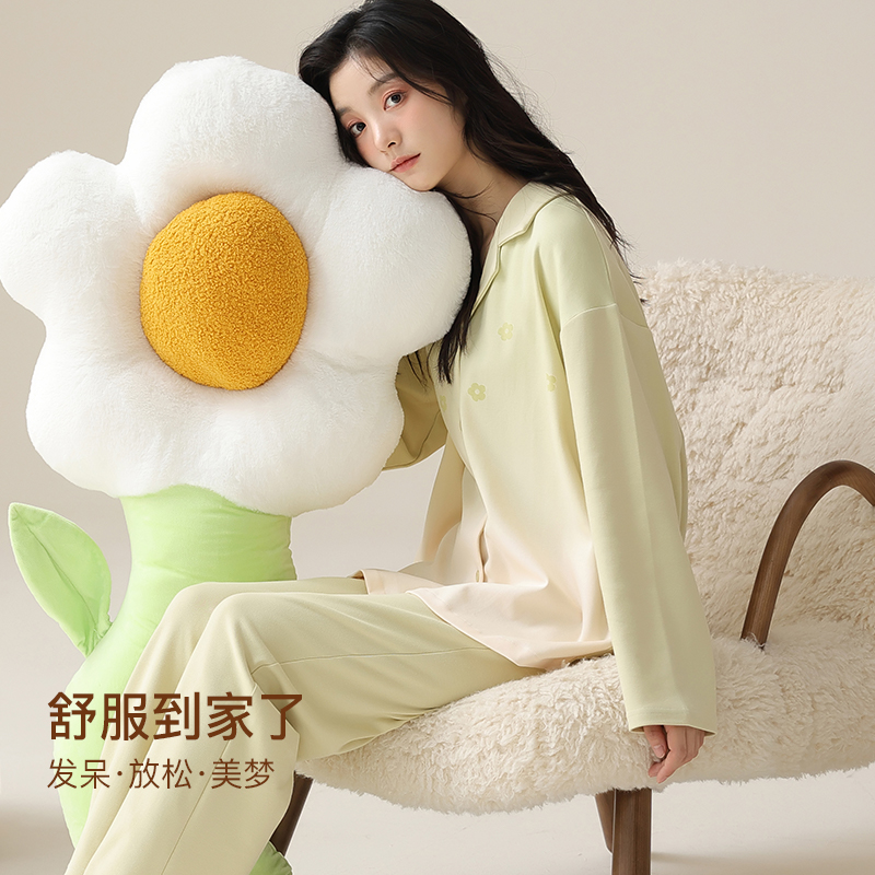 100%全棉女可爱家居服套装 春秋冬新款 长裤 莫代尔纯棉睡衣女士长袖