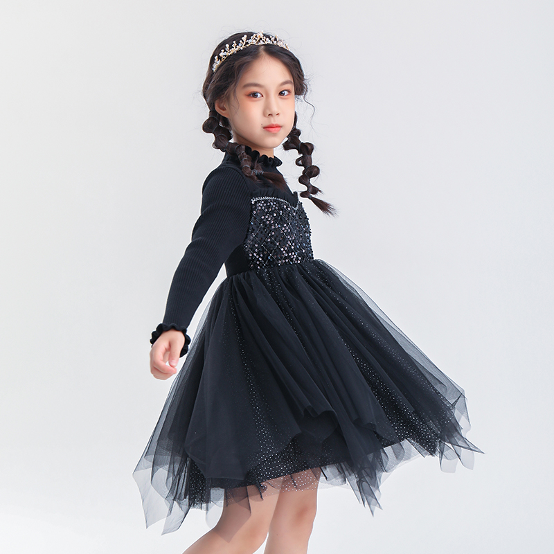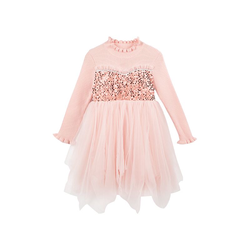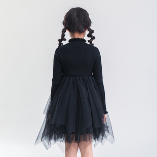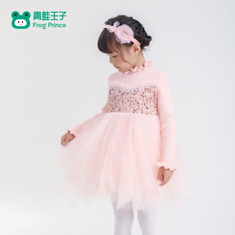 青蛙王子童装 连衣裙休闲气质公主裙针织拼接网纱裙 小童女冬季