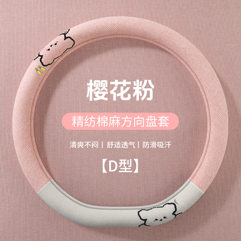 汽车方向盘把套冬天短绒樱花粉 可爱女款 2024新款 方向盘套毛绒冬季