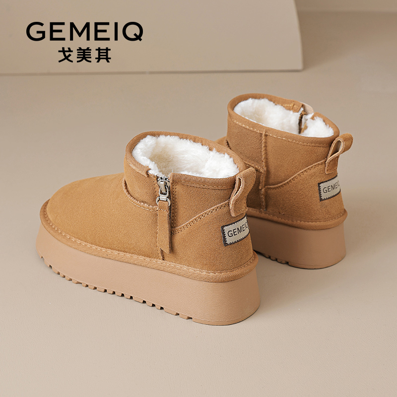 加绒棉靴防滑皮毛一体真皮短靴 新款 戈美其厚底雪地靴女款 2024冬季