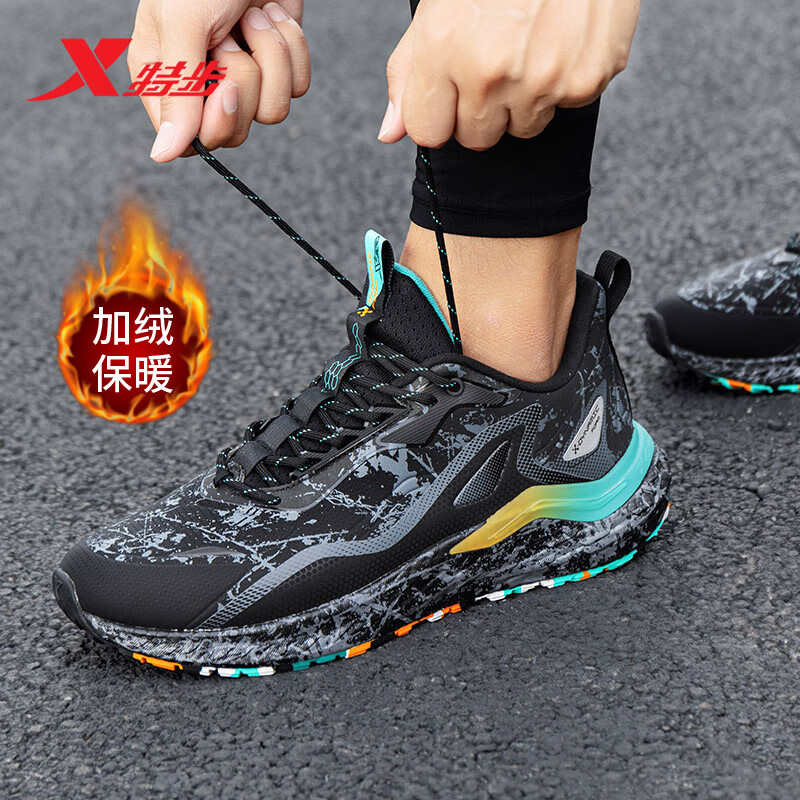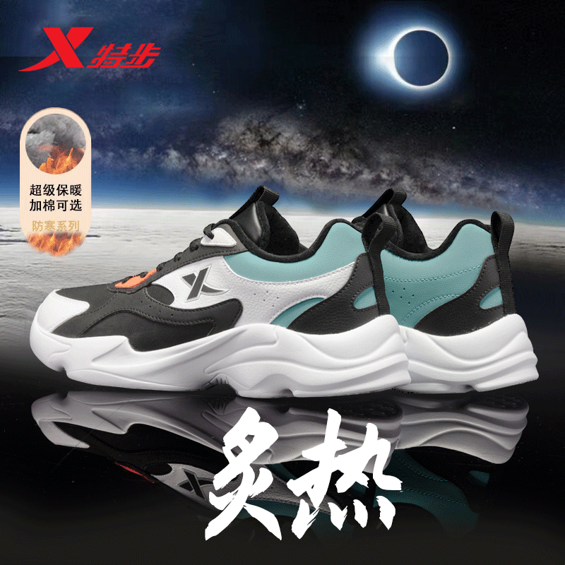 子跑步鞋 男士 正品 特步男鞋 官方旗舰运动鞋 皮面防水鞋 老爹鞋 男 秋季