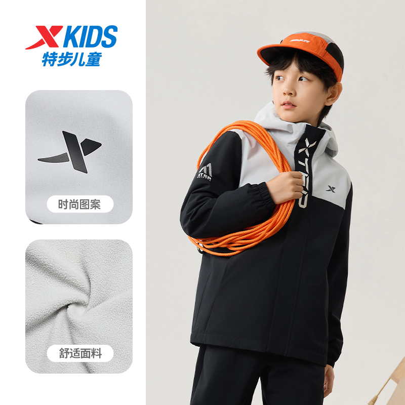 儿童冲锋衣三防运动风衣防风秋装 新款 上衣男 男童外套秋季 特步童装