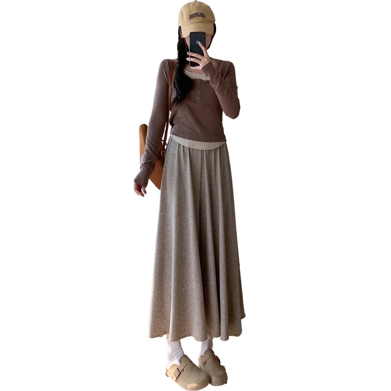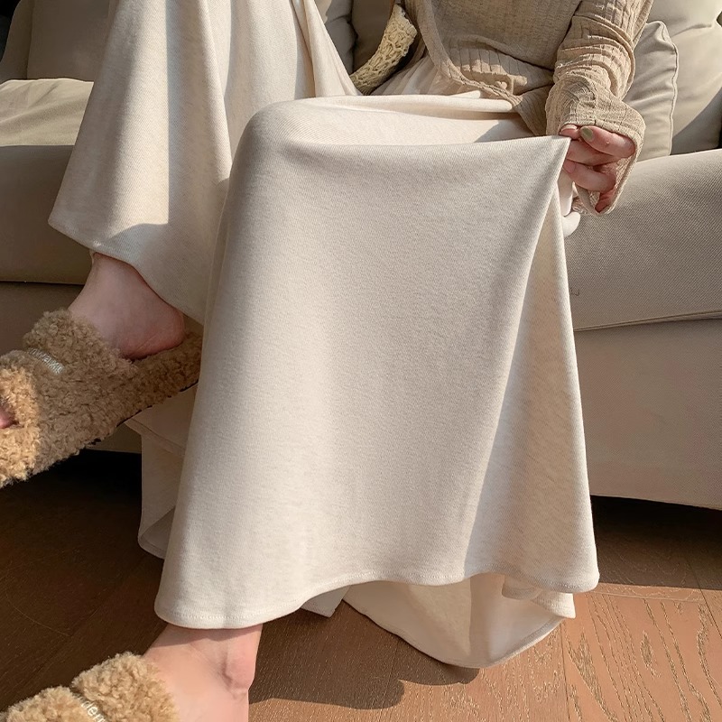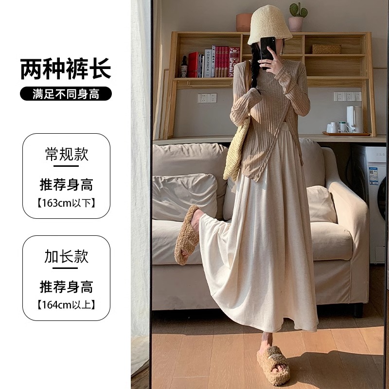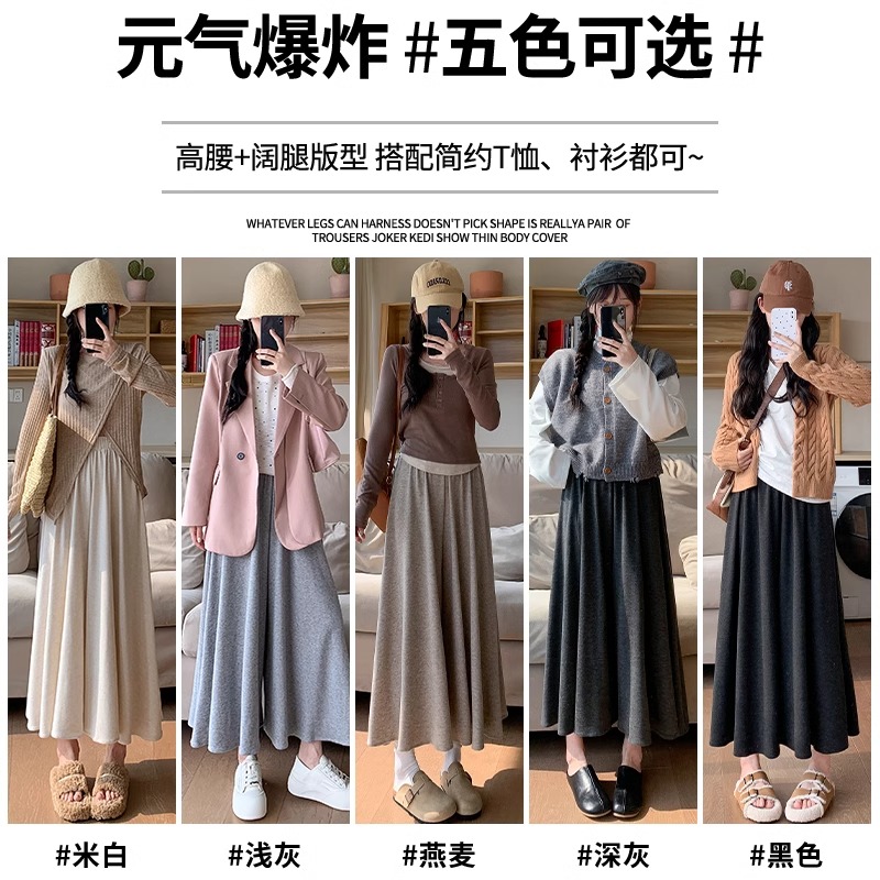 高腰垂感宽松慵懒小个子针织阔腿裤 燕麦色糯米裙裤 女春秋2024新款