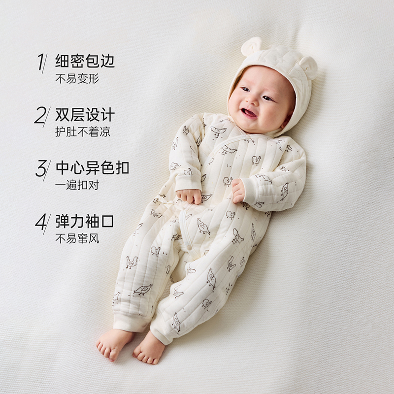 夹棉保暖哈衣婴儿睡衣爬服 babylove新生儿连体衣秋冬款 清仓
