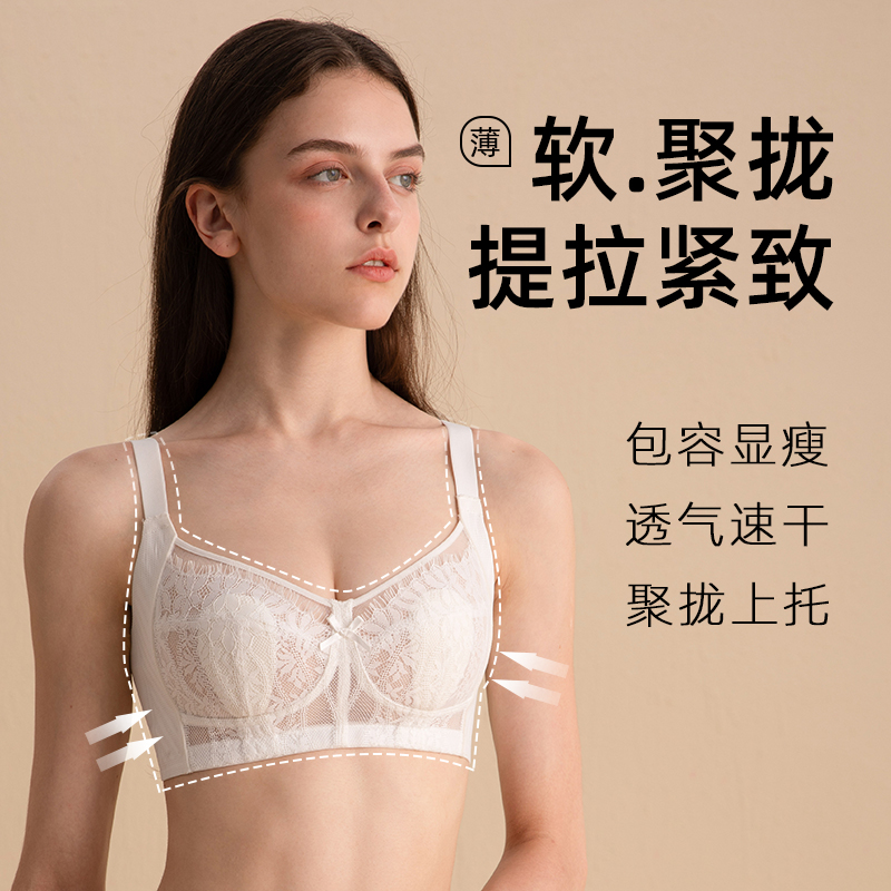 蝴蝶日记调整型内衣女薄款 大胸显小软支撑防下垂无钢圈收副乳文胸