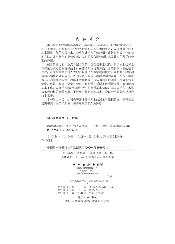 第2版 第二版 社 书 土木类水利类测量学知识技术测绘学地球科学书籍KX 科学出版 测绘学基础 袁天奇 王铁生