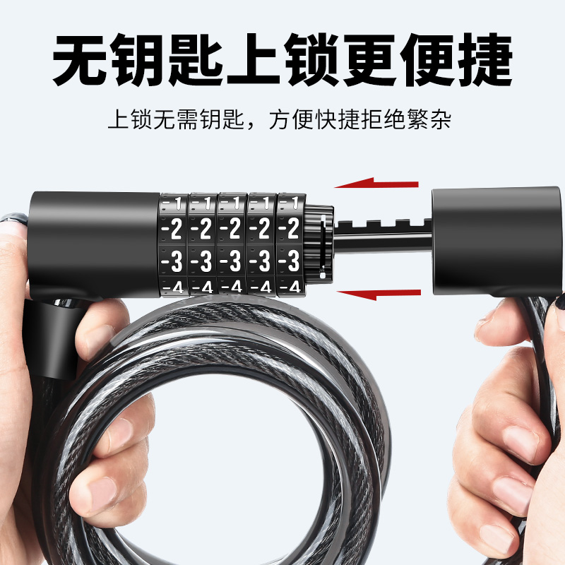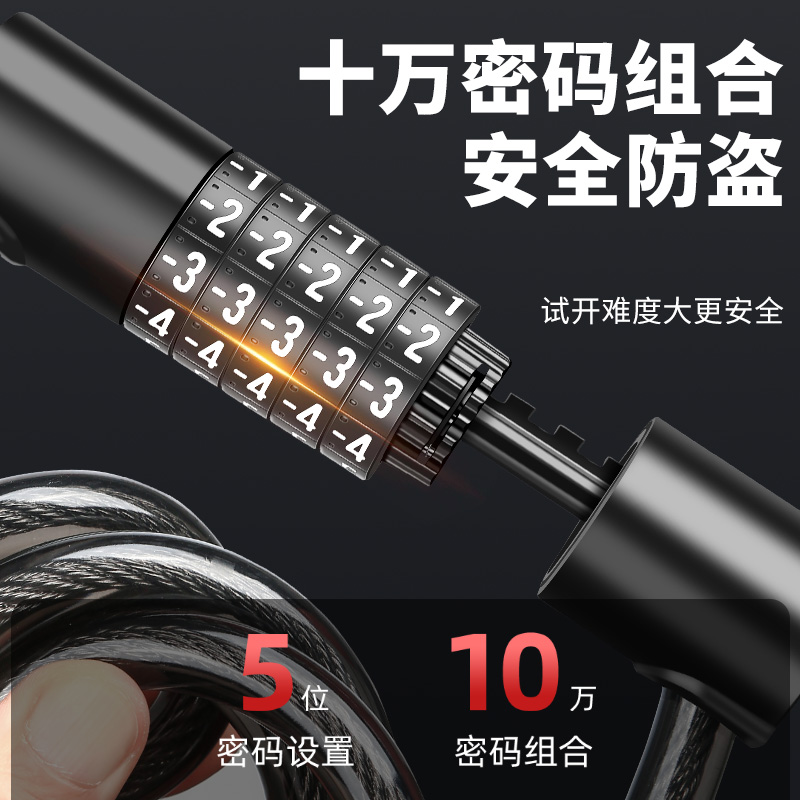 山地自行车密码 锁防盗钢丝锁电动电瓶摩托车环形链条锁头儿童单车