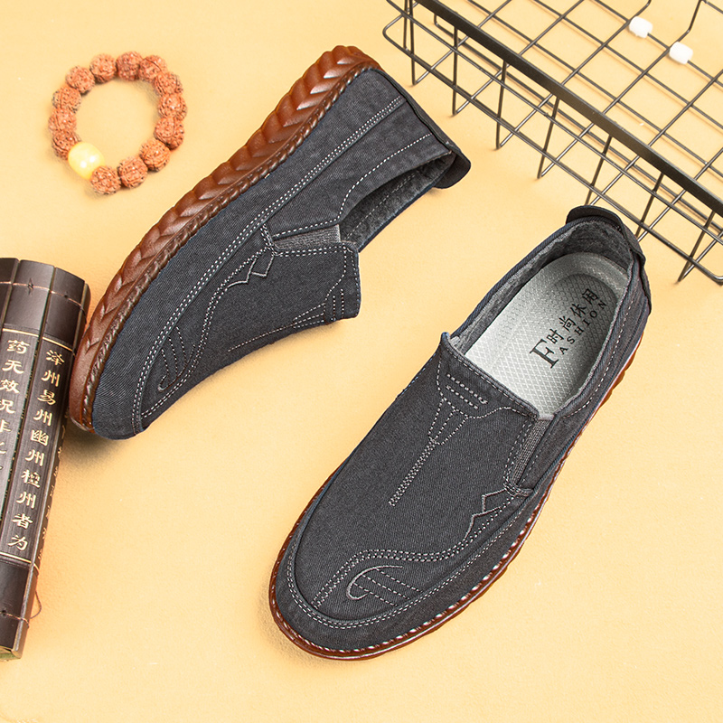 防水休闲全黑酒店工作帆布懒人一脚蹬大码 春秋新款 男士 老北京布鞋