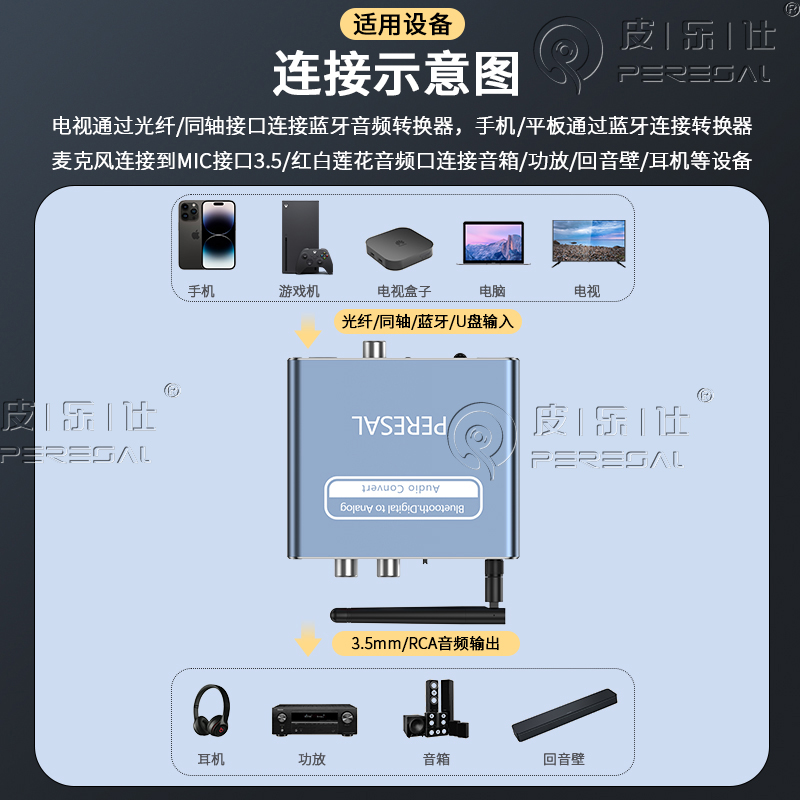 优联 电视接音响 同轴音频转换器电视接音响数字转模拟信号spdif转3.5音频一分二双莲花线射频输出适用老式
