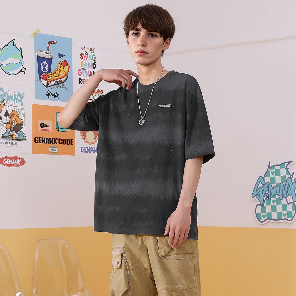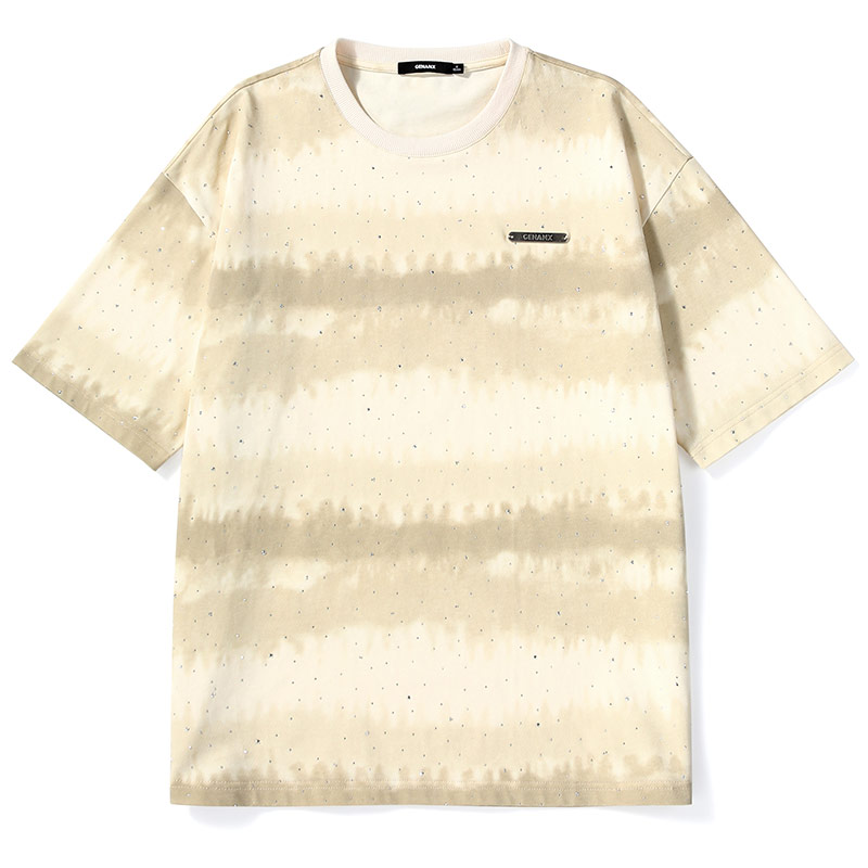 GENANX闪电潮牌新款 满天星烫钻闪钻金属小牌渐变色纯棉情侣T恤男