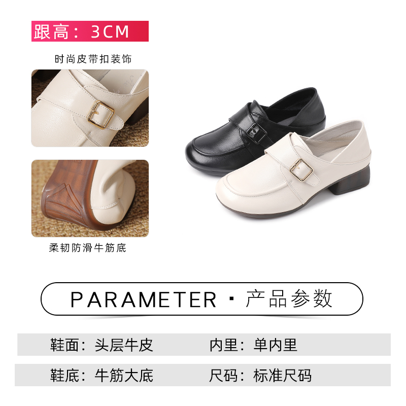 女鞋 真皮舒适轻便牛筋软底软皮单鞋 大码 春秋皮鞋 一脚蹬中年妈妈鞋