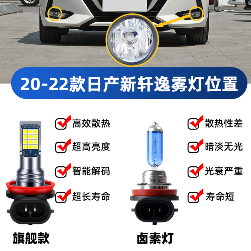 日产新轩逸爆闪LED前雾灯黄金眼超亮日产轩逸灯泡改装 适用20 22款