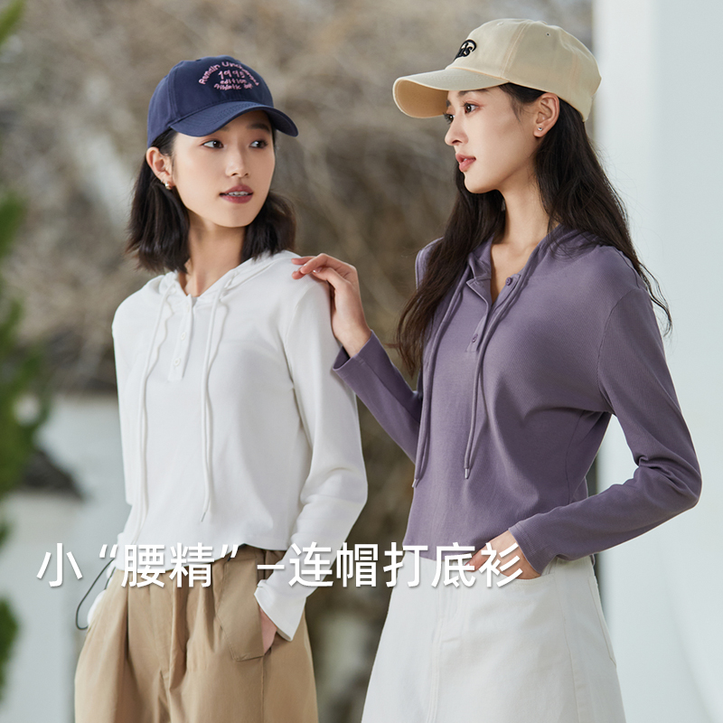 小众白色长袖 连帽卫衣女打底衫 宽松内搭短款 薄款 上衣 2025年春秋季