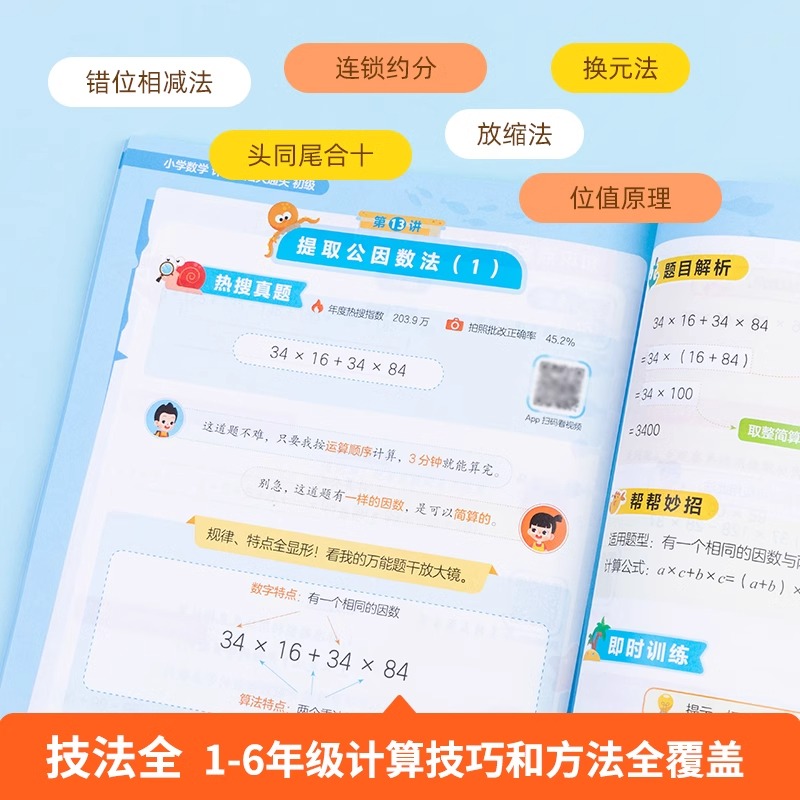 2025版 作业帮小学数学计算技法大通关初级高级速算技巧一二三四五六年级解题思路题型规律精选真题配套名师视频秒解计算难题