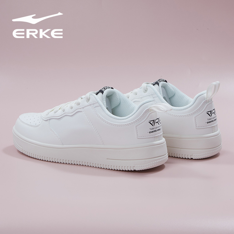 纯白轻便平底运动鞋 秋冬新款 女士皮面板鞋 鸿星尔克空军一号小白鞋