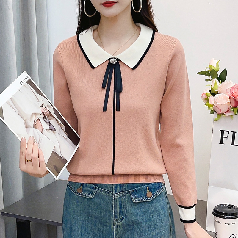 内搭秋装 娃娃领针织衫 上衣打底衫 毛衣女秋冬洋气宽松长袖 2023新款