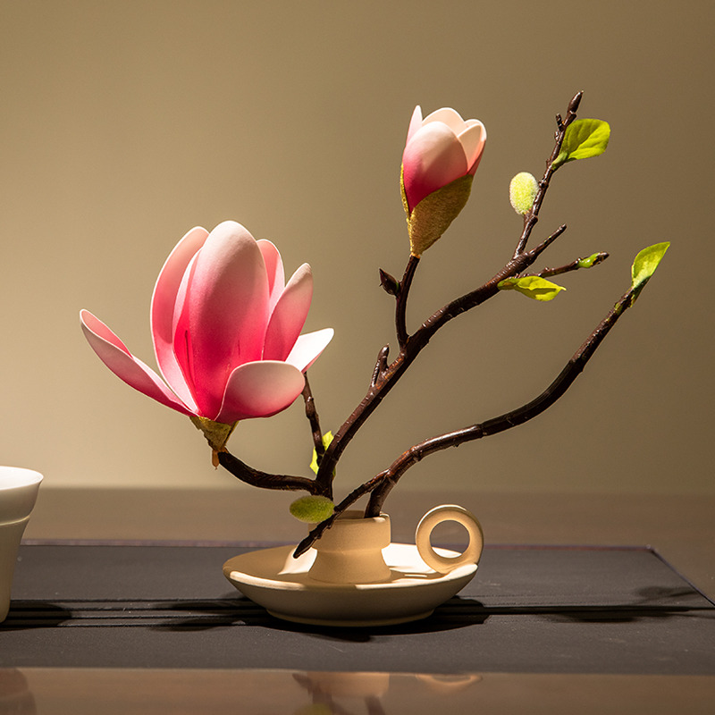 新中式 饰摆件 玉兰花仿真花客厅餐桌禅意高档室内花茶桌复古花瓶装
