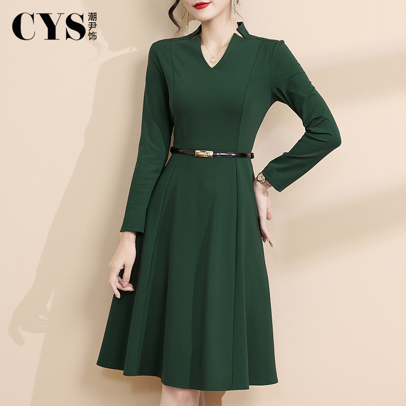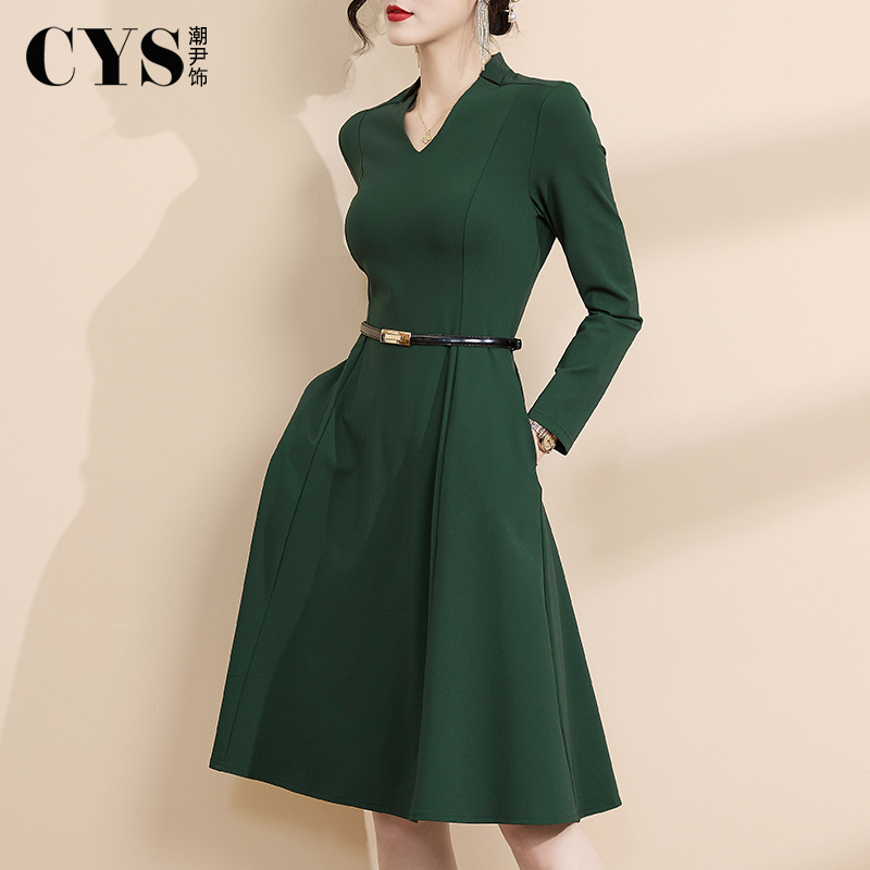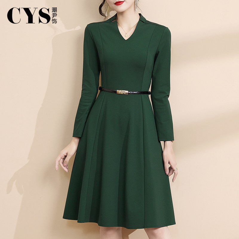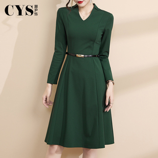 GOLDEN 气质通勤简约百搭叠穿V领背心连衣裙307132 BARRY25秋经典