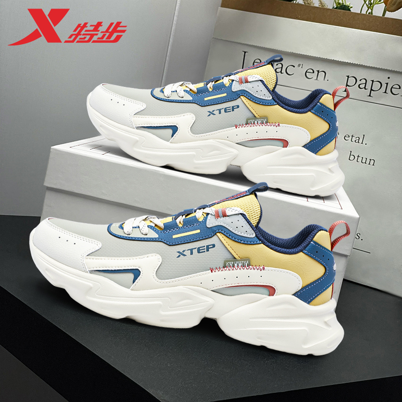 2025新款 子厚底增高复古老爹鞋 休闲鞋 皮面防水运动鞋 男士 特步男鞋