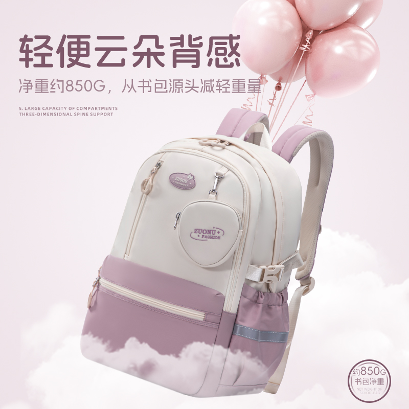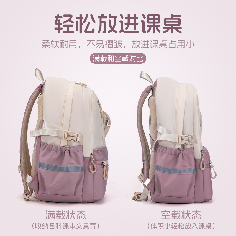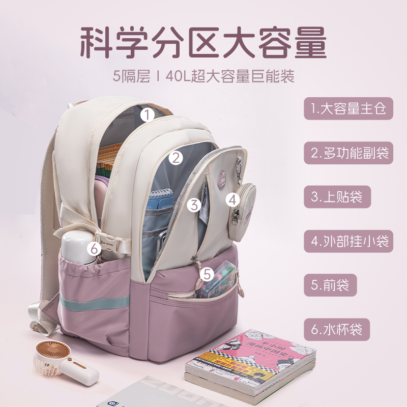 高颜值书包女初中生2025新款 大容量高中生减负护脊双肩背包中学生