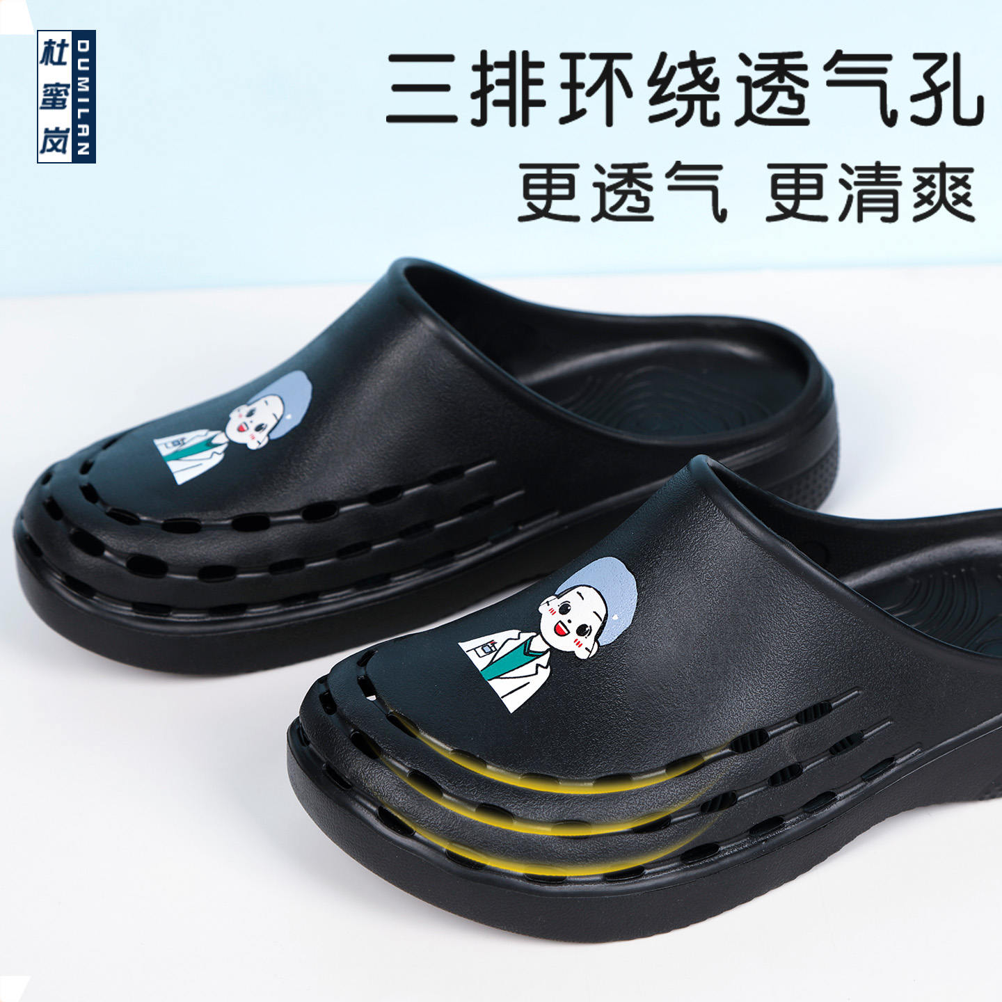 医生工作鞋 手术鞋 护士凉鞋 女手术室拖鞋 防滑透气男 卡通印花洞洞鞋
